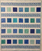 Scrappy teals and blues to welcome the new baby. Quilted in an all-over swirl design.