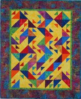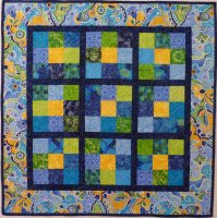 The ever-popular Yellow Brick Road pattern in blue, green and yellow. Quilted with an all-over loop-de-loop.